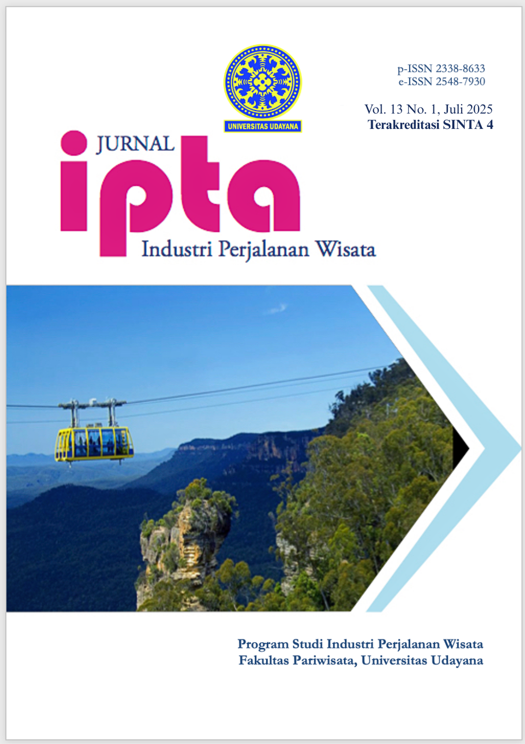 Volume 13 Number 2 (2025) of Jurnal IPTA (Industri Perjalanan Wisata) presents updated scholarly contributions that address current challenges and recent developments in tourism and travel studies within Indonesia. This issue includes research that examines key themes such as destination management, service quality, digital tourism promotion, and stakeholder engagement in diverse tourism contexts.
